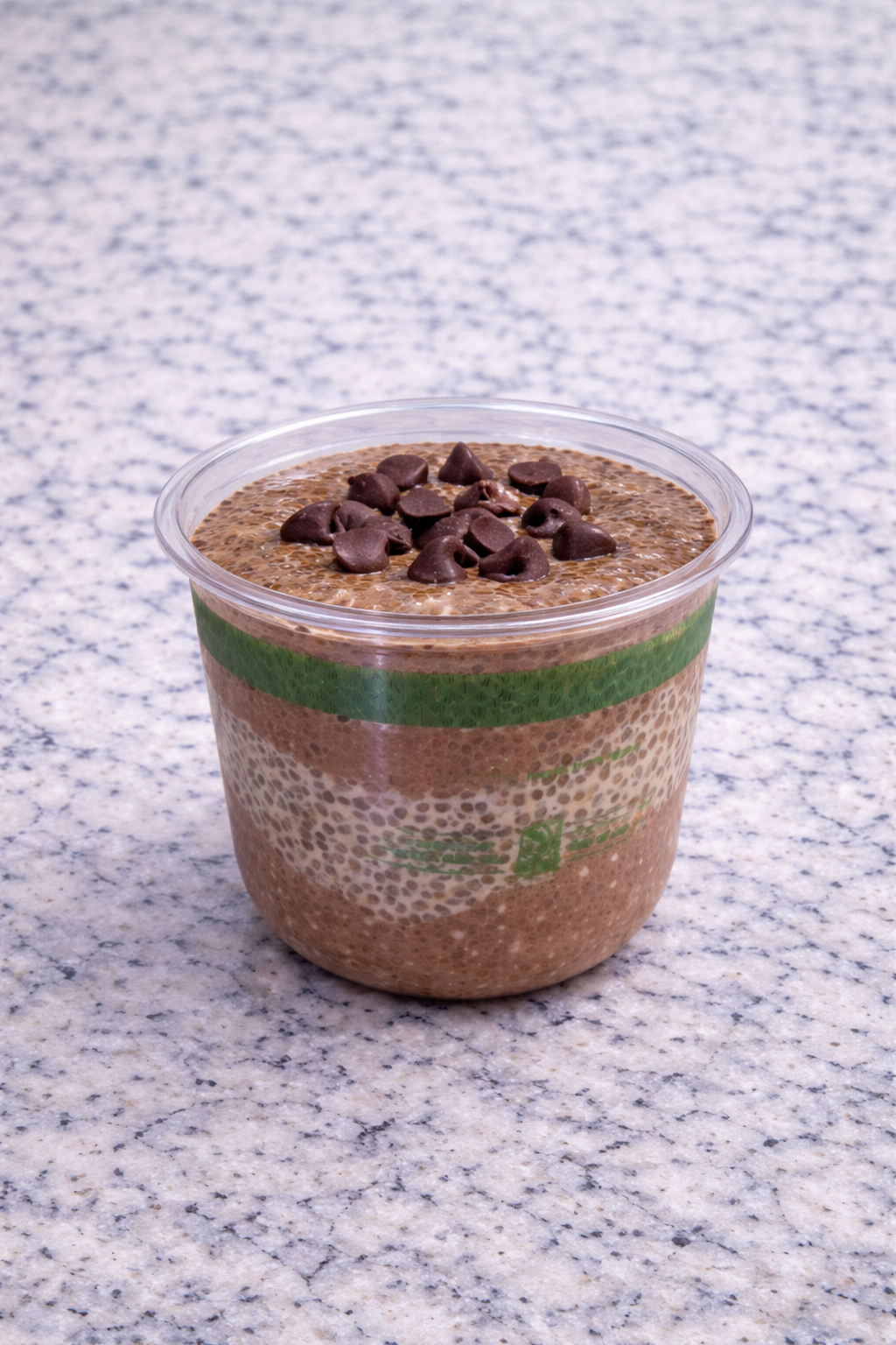 Organic chia seeds, Silk original coconut milk, Vanilla extract, Monk fruit sweetener with Erythritol, 100% Columbian Coffee, Organic 100% Cacao. Garnish- Chocolate chips